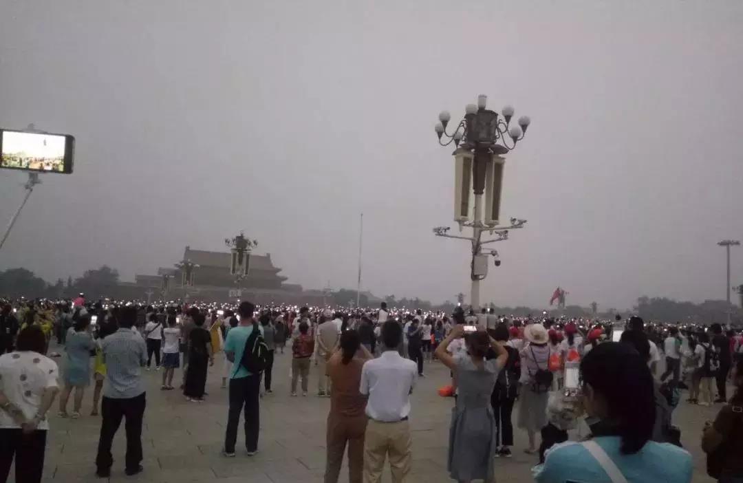 凌晨五点,北京天安门广场,五星红旗在国歌的伴奏下冉冉升起,广场上亮压压的一片,全是观赏升旗的游人。那亮亮的明灯,实是游人手举着拍照的手机。哈哈,这些高举的手机,也自成一道风景,这也许是中国人表达对国旗的一种新的尊重方式吧!