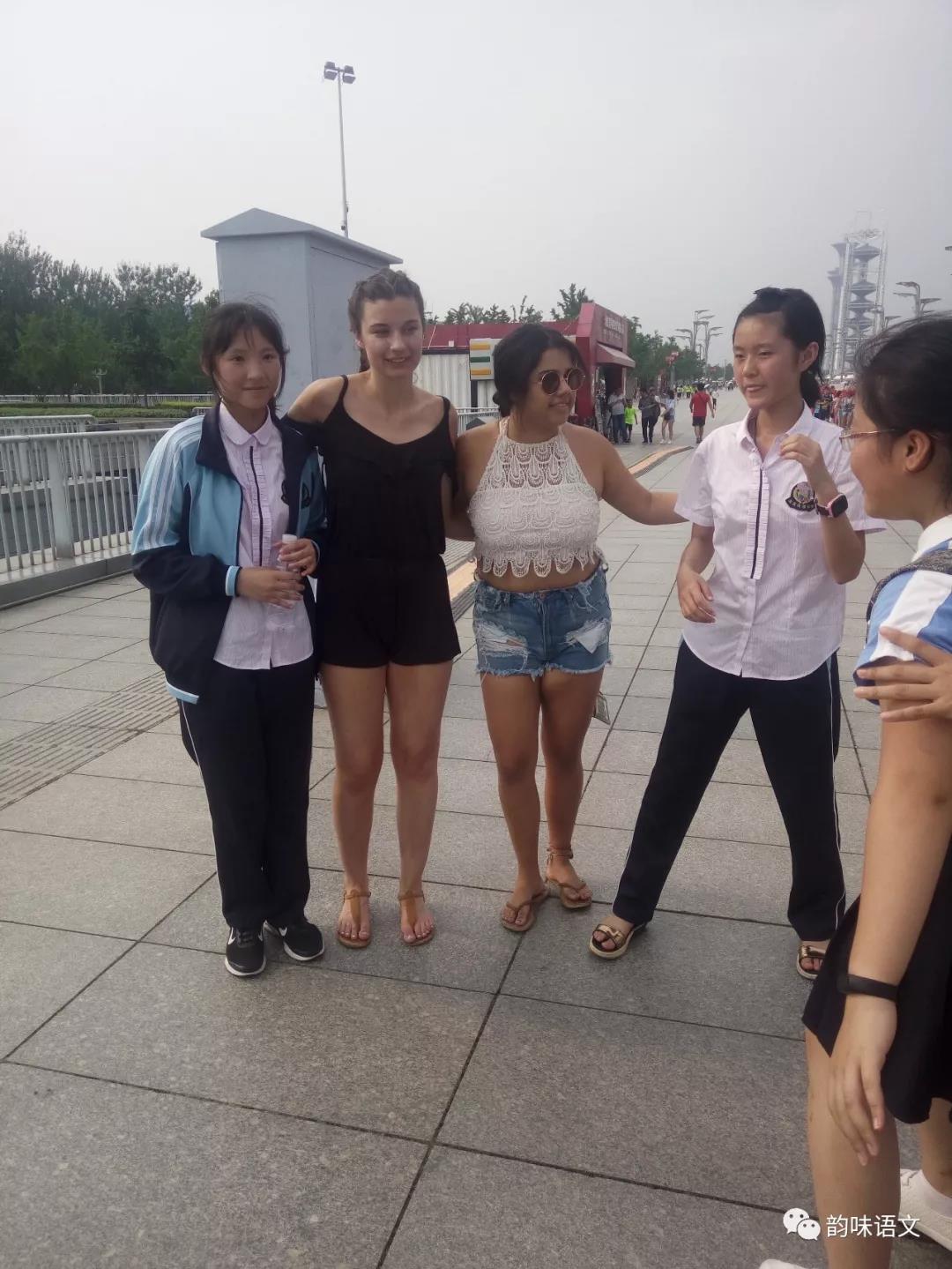 下午,最后的一站是鸟巢、水立方外围的观光。在此处,国际友人遇到不少,大家兴奋地跑过去跟他们合影,有的孩子不知道该如何打招呼,涩涩地跑到人家身边,好在美丽的外国姑娘能领会咱中国孩子的意思,很友好地拉大家入镜。拍摄成功,孩子们一个一个像小鸟一样满足地跳开了。