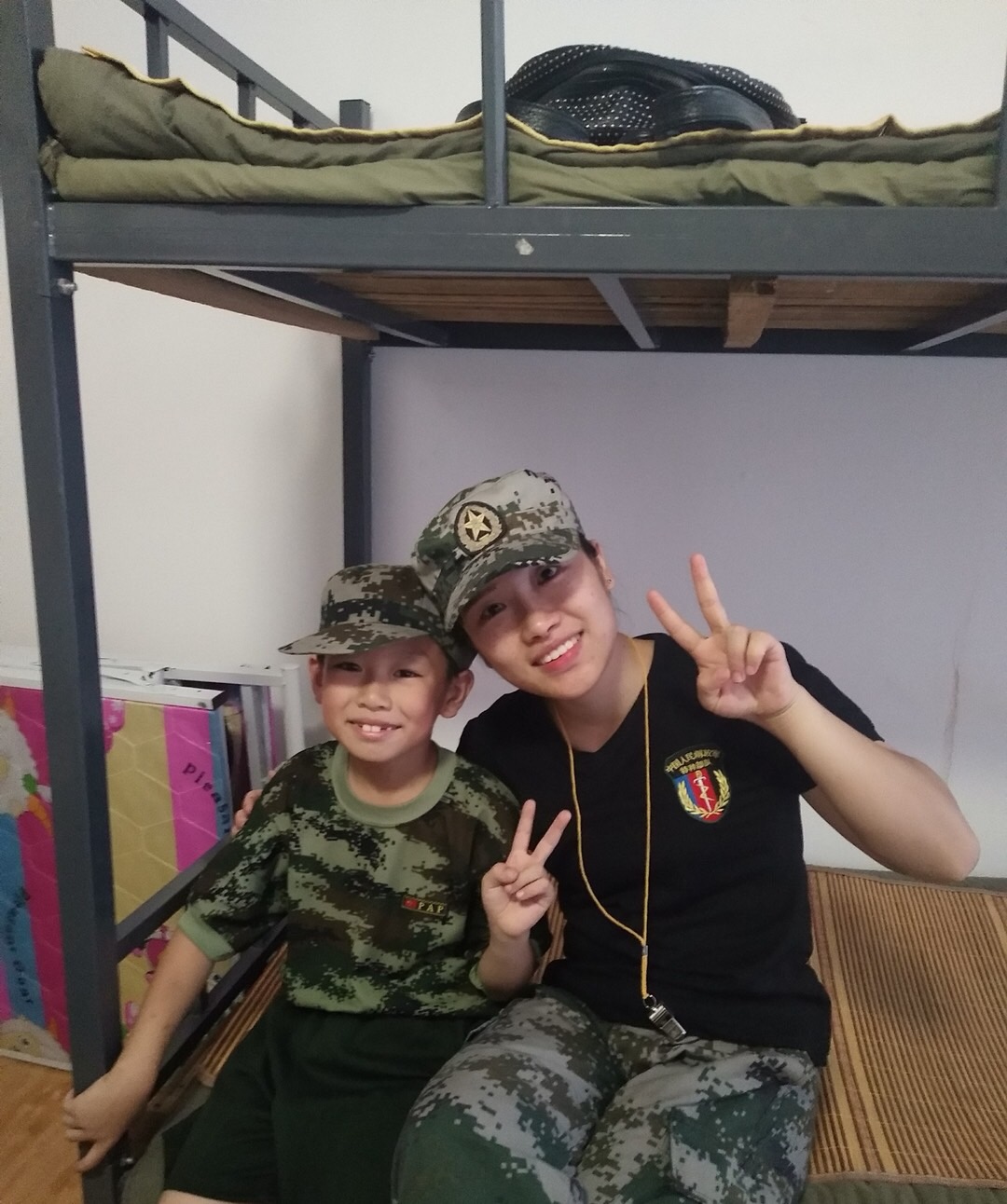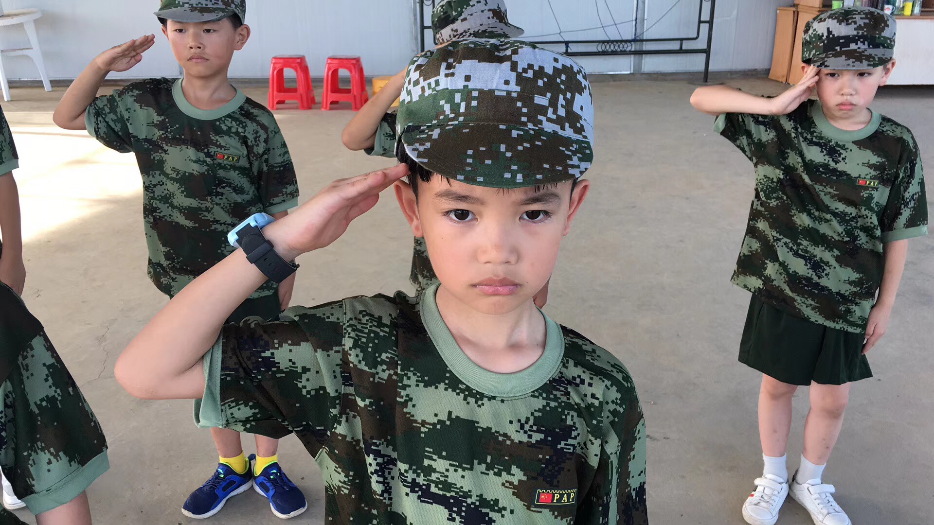 一天的适应训练下来,我们发扬不怕苦、不怕累精神,我们学会了军姿、学会了军礼,学会了自己整理内务,开始自己洗衣服,知道了团结互爱。加油